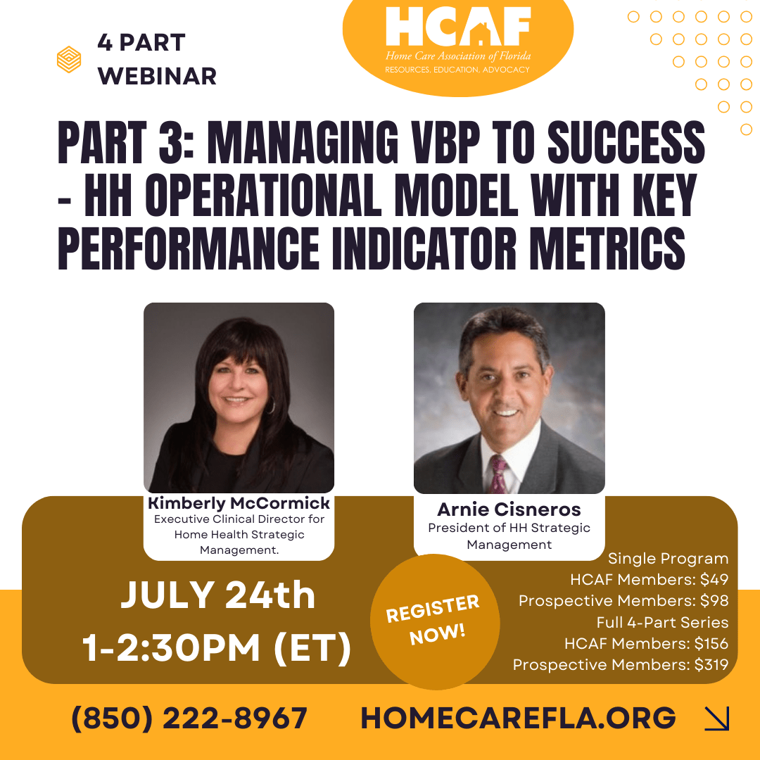 With a Value-Based HH platform as the basis of your care production, care delivery, and patient satisfaction programming, you will be on the path for VBP-qualified outcomes. In addition, you will be prepared for success under the subsequent Impact Act HH reforms, including PAC PPS. Don’t miss this essential webinar series and start preparing for VBP success today.