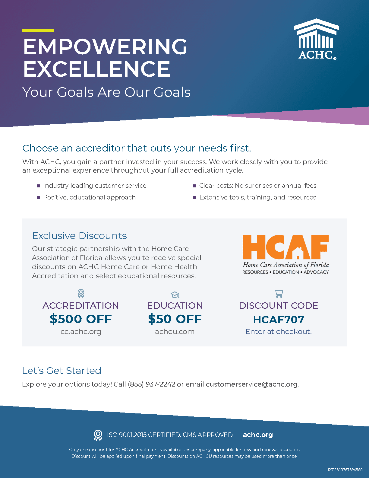 Accreditation leader ACHC empowers a culture of excellence, equipping agencies to lead the way in home-based care. Committed to offering exceptional service, ACHC supports you before your survey and beyond with a collaborative, educational experience that puts your needs first — and helps you build a foundation for lasting success. Whether you offer home health, home care/private duty, or hospice services, you can count on our experienced staff to quickly answer your questions, supply essential resources, and deliver tailored solutions that reduce costs. As a CMS national accreditor, ACHC makes it easier for you to achieve or maintain Medicare certification.