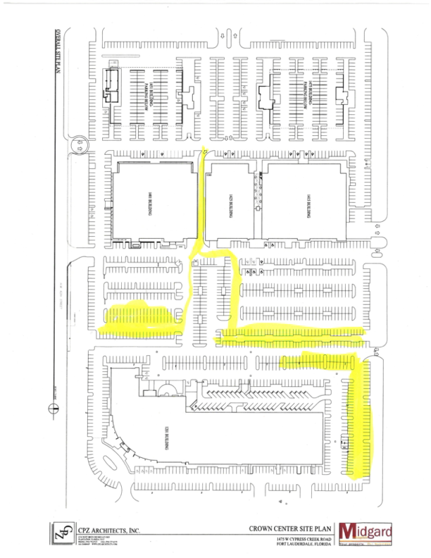 Please park on the outside of the building not in the garage as those spaces are reserved. See the parking map below. Highlighted areas on the map show additional overflow parking areas in the plaza.