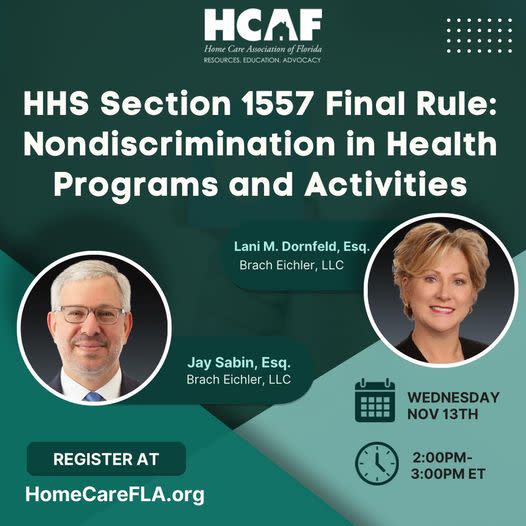 HHS Section 1557 Final Rule: Nondiscrimination in Health Programs and Activities (Webinar)