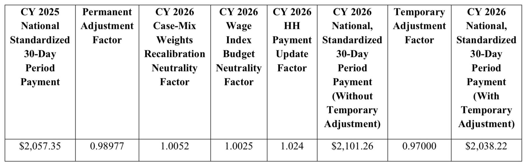 Overall, CMS estimates a $220 million (-1.3%) decrease in aggregate Medicare payments to home health agencies for CY 2026.